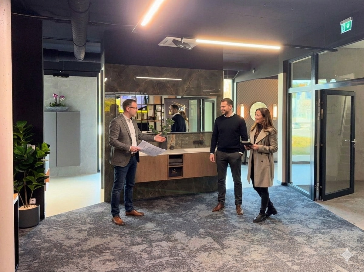 Bei uns siehst du Materialien so, wie sie später wirken – verbaut, beleuchtet und im Zusammenspiel. Auf Wunsch visualisieren wir dein Projekt zusätzlich, damit du dich sicher entscheiden kannst.